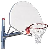 - Includes post, silver aluminum backboard, goal, and net